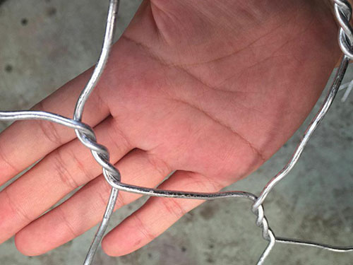 三擰石籠的選用不同材質(zhì)的低碳鋼絲在六角網(wǎng)機編織過程中雙絞線互繞三圈,擰花直徑一般在3cm左右。